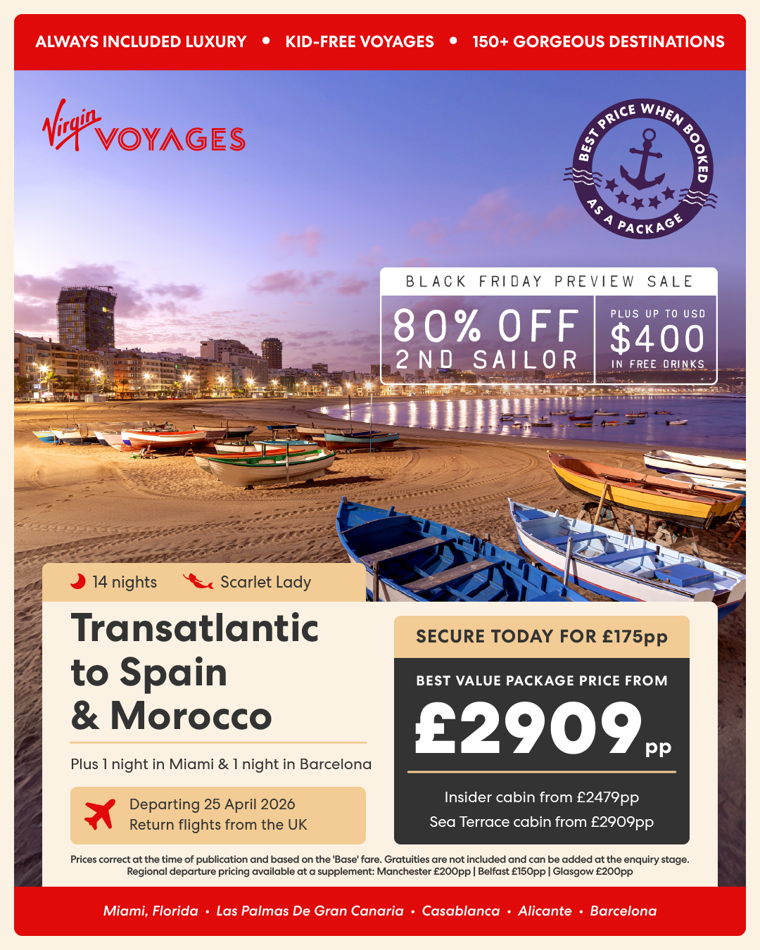 ‼️ Already Booked? Have you already booked and would like my support with your booking? Simply Contact Virgin Voyages with the below information and they will allocate your booking to me to support you.